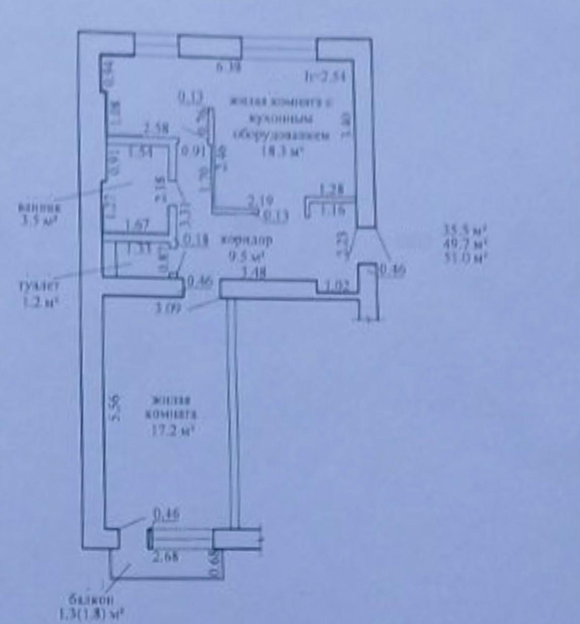 – Общая S – 49.7 кв.м.;
