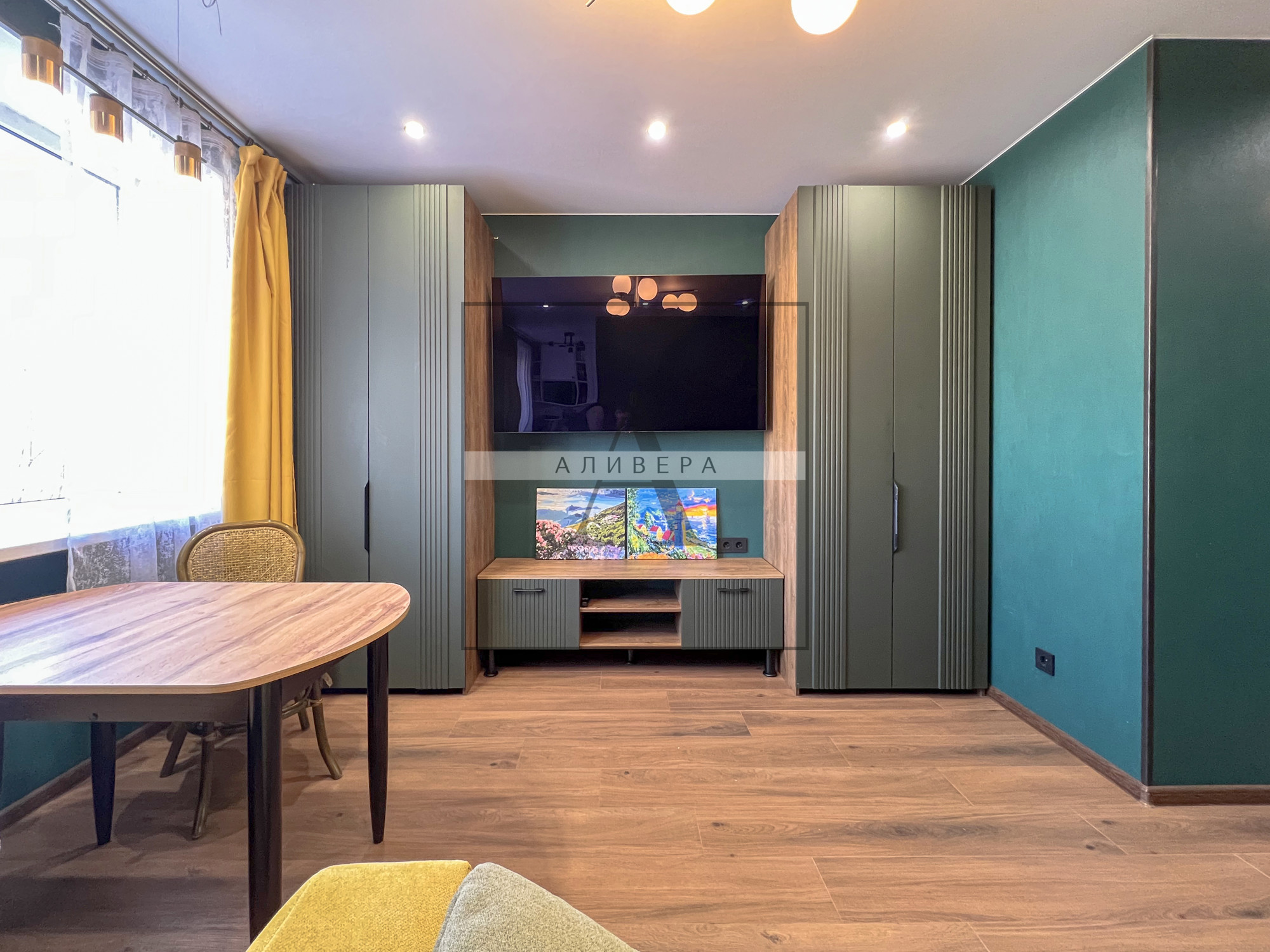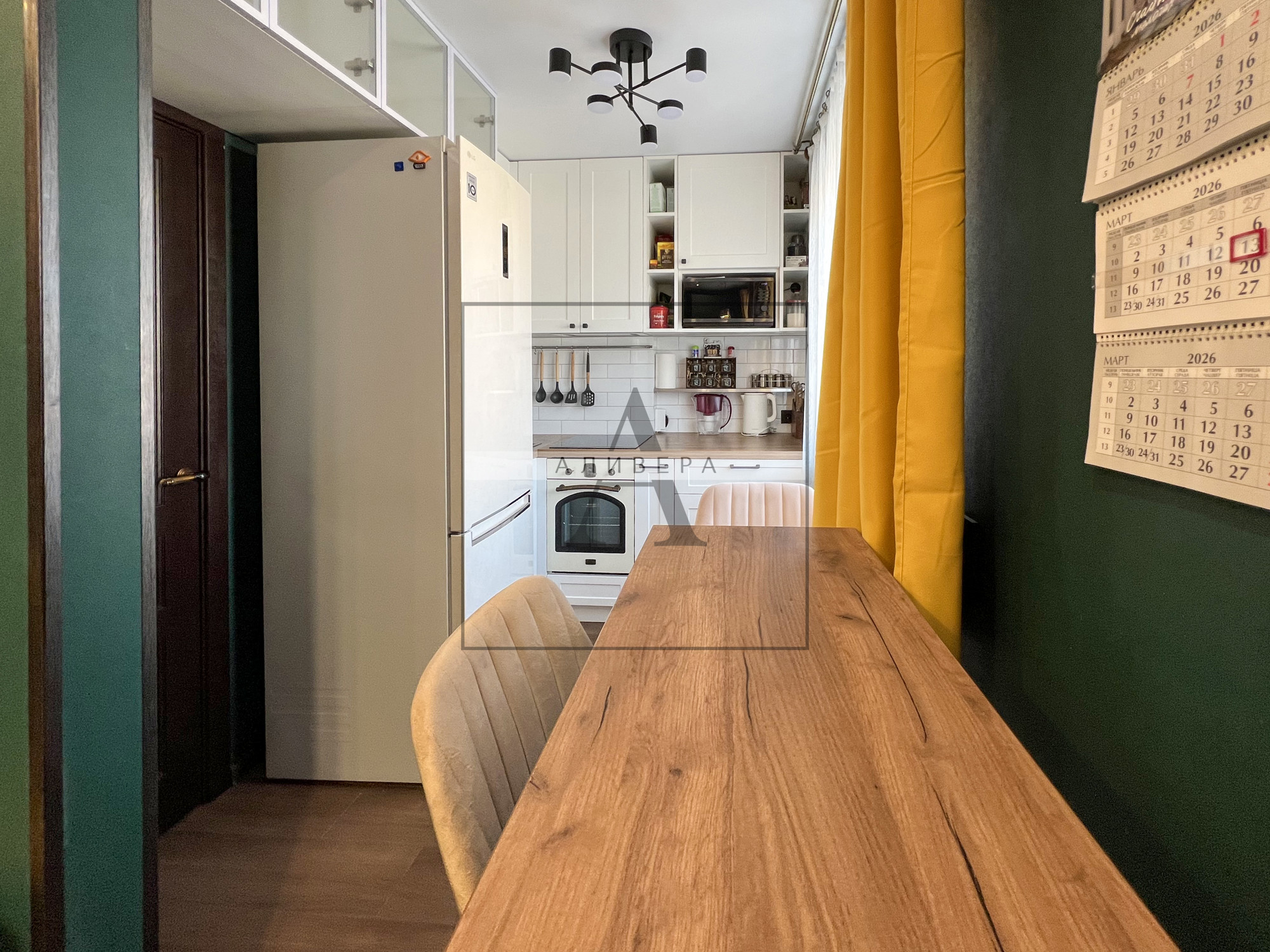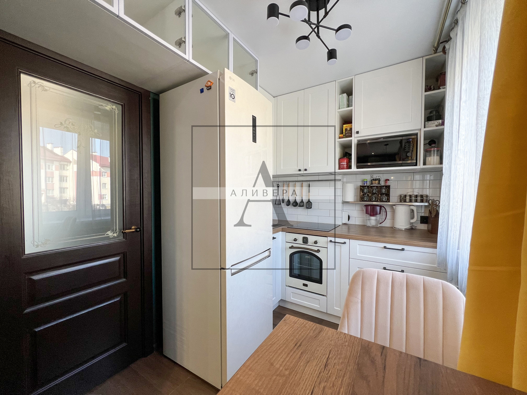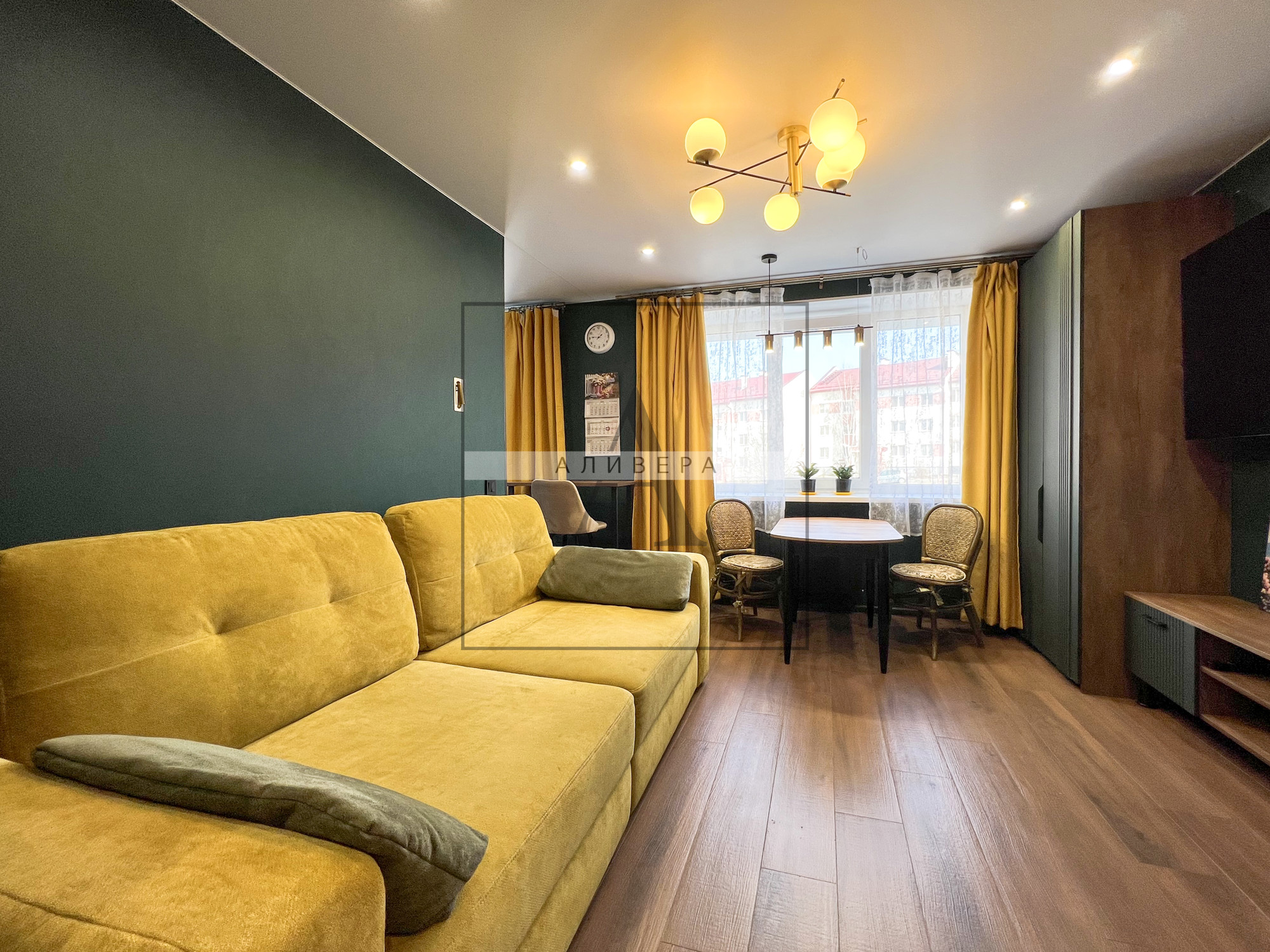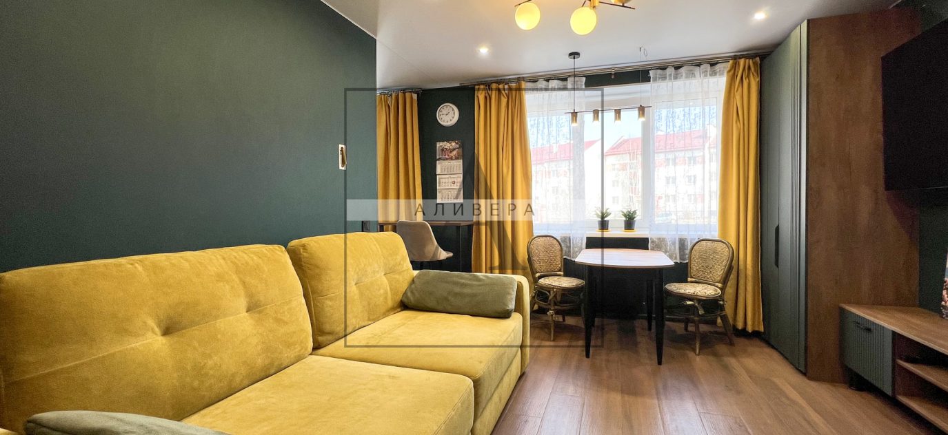 – Жилая S – 35.5 кв.м. (одна из комнат совмещена с кухонной зоной и является полноценной кухней-гостиной – планировка узаконена).